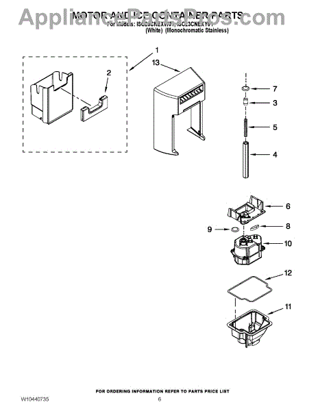 This ice container (ice bin) stores ice made by the icemaker and interfaces with the dispenser drive to deliver cubes or crushed ice. Replacing a cracked or worn bin restores dependable ice storage and dispensing performance.