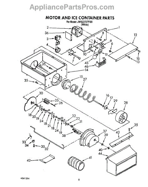 Parts for Whirlpool JWRZ2727FI00: 07 - Motor And Ice Container Parts