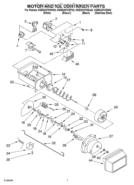 Parts for Kitchenaid KSBS25FKBL02: 05 - Motor And Ice Container Parts
