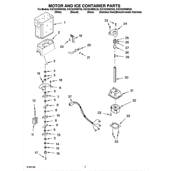Parts for Kitchenaid KSCS23INSS00: 05 - Motor And Ice Container Parts