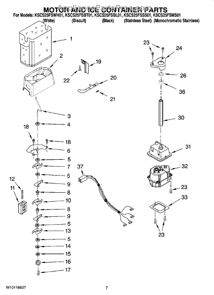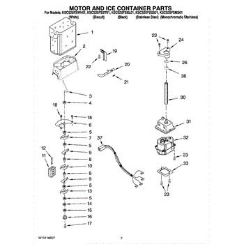 Parts for Kitchenaid KSCS25FSWH01: 05 - Motor And Ice Container Parts