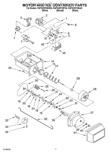 Parts for Kitchenaid KSFS25FKBT02: 05 - Motor And Ice Container Parts