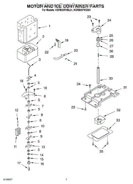 Parts for Kitchenaid KSRB25FKSS01: 05 - Motor And Ice Container Parts