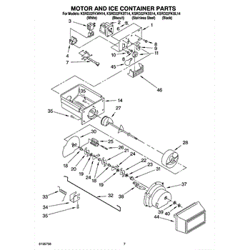 Parts for Kitchenaid KSRD22FKBT14: 05 - Motor And Ice Container Parts
