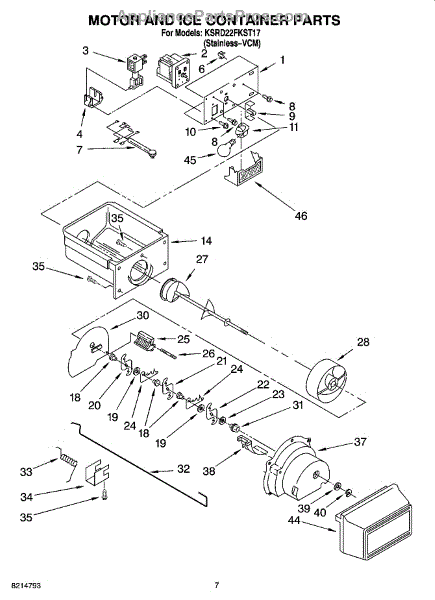 Parts for Kitchenaid KSRD22FKST17: 05 - Motor And Ice Container Parts