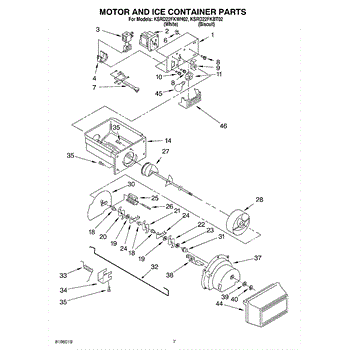 Parts for Kitchenaid KSRD22FKWH02: 05 - Motor And Ice Container Parts