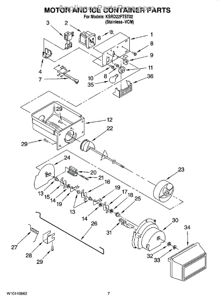 This is the complete horizontal ice dispenser bucket assembly with crusher. It fits 22 cubic foot refrigerator models. For 20 cubic foot models order WP2209778. For 25 and 27 cubic foot models order WPW10312300.