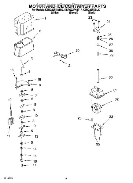 Parts for Kitchenaid KSRG22FKBT17: 06 - Motor And Ice Container Parts