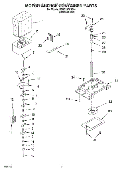 Parts for Kitchenaid KSRG25FKSS04: 05 - Motor And Ice Container Parts