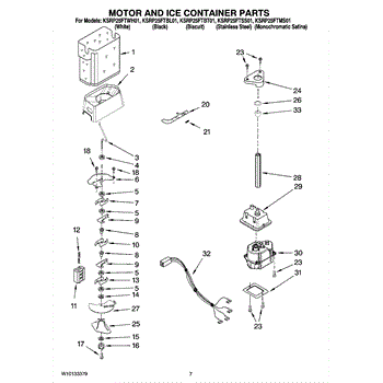 Parts for Kitchenaid KSRP25FTBL01: 05 - Motor And Ice Container Parts