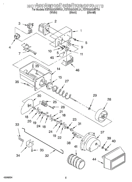 Parts for Kitchenaid KSRS22QGWH01: 04 - Motor And Ice Container Parts