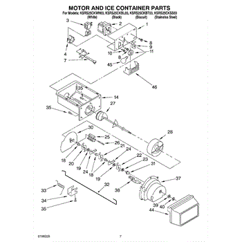 Parts for Kitchenaid KSRS25CKBT03: 05 - Motor And Ice Container Parts