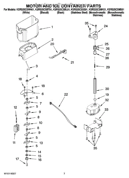 Parts for Kitchenaid KSRS25CSBT01: 05 - Motor And Ice Container Parts