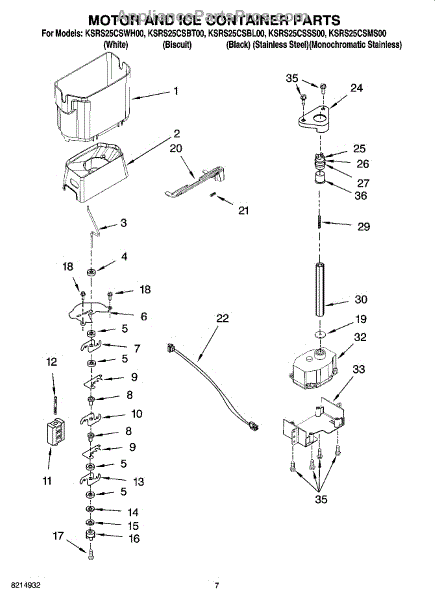 Parts for Kitchenaid KSRS25CSWH00: 05 - Motor And Ice Container Parts
