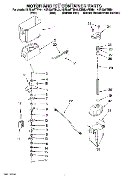 Parts for Kitchenaid KSRS25FTBL01: 05 - Motor And Ice Container Parts