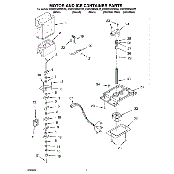 Parts for Kitchenaid KSRS25PNLK00: 05 - Motor And Ice Container Parts
