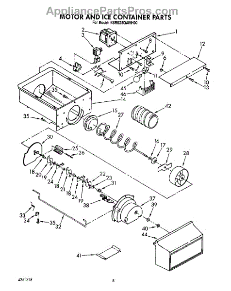 Causes of a bad Ice Container Assembly can include cracks or damage to the bin, which can lead to ice leaks or accumulation in the freezer; wear or malfunction of the dispensing mechanism, affecting its ability to deliver ice.