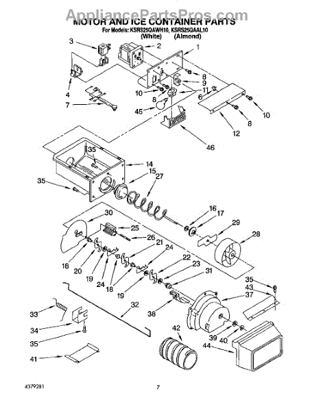 Parts for Kitchenaid KSRS25QAAL10: 05 - Motor And Ice Container Parts