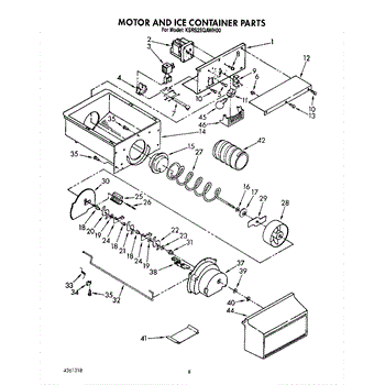 The Ice Container Assembly is an OEM part for Whirlpool refrigerators. This assembly includes the ice bin, where ice is collected, and often features integrated mechanisms or augers for dispensing ice through the refrigerator's door.