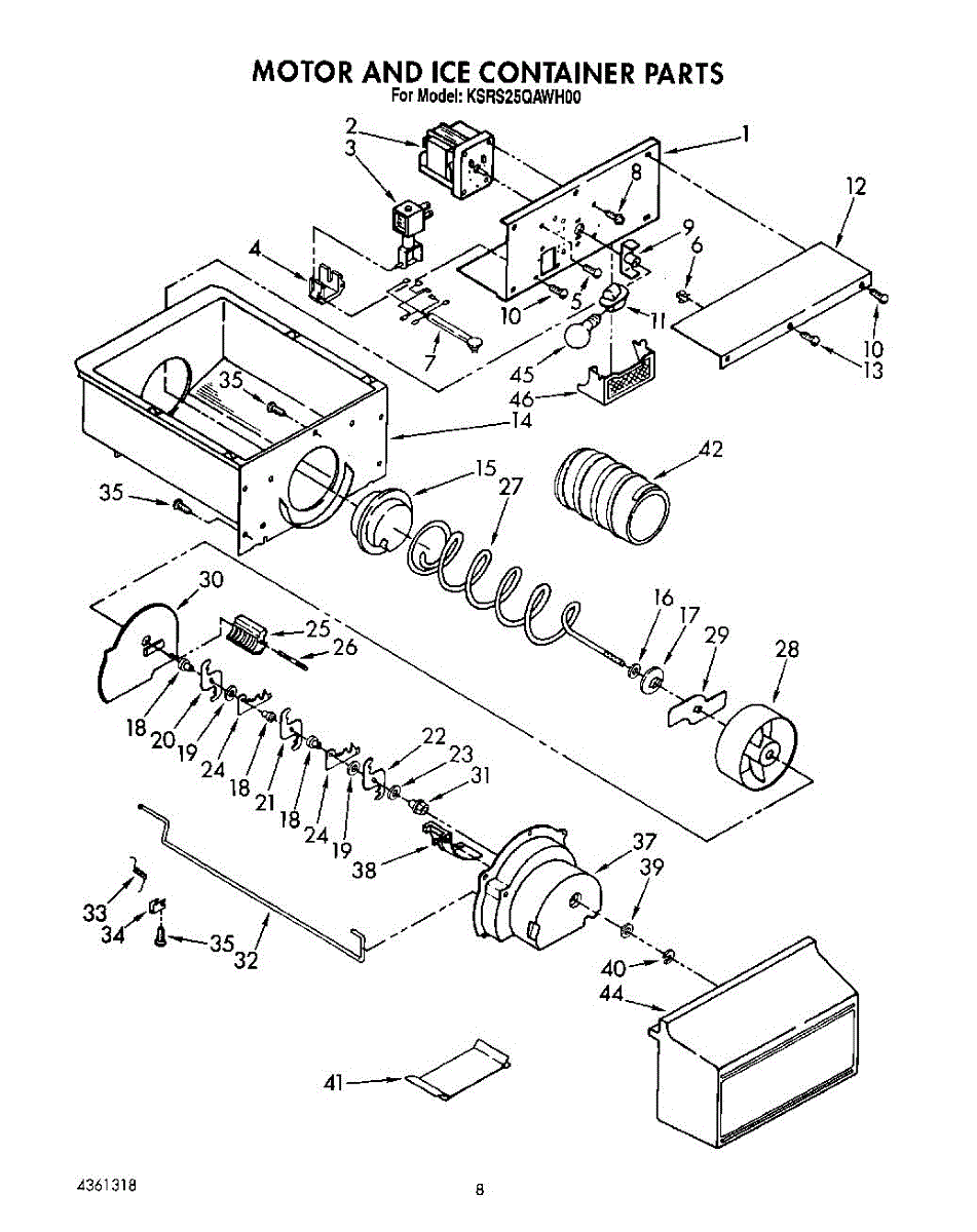Causes of a bad Ice Container Assembly can include cracks or damage to the bin, which can lead to ice leaks or accumulation in the freezer; wear or malfunction of the dispensing mechanism, affecting its ability to deliver ice.