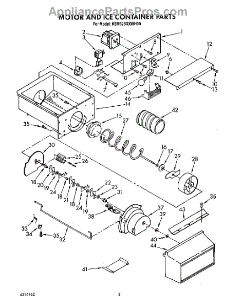 Parts for Kitchenaid KSRS25QXAL00: 07 - Motor And Ice Container, Lit / Optional Parts