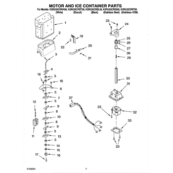 Parts for Kitchenaid KSRU25CRBL00: 05 - Motor And Ice Container Parts