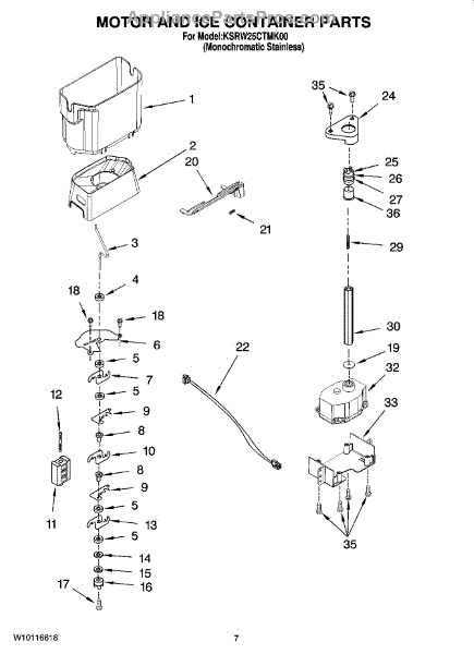 Parts for Kitchenaid KSRW25CTMK00: 05 - Motor And Ice Container Parts