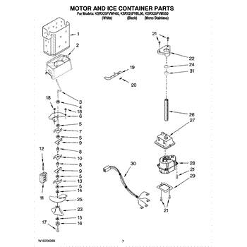 Parts for Kitchenaid KSRX25FVMS00: 05 - Motor And Ice Container Parts