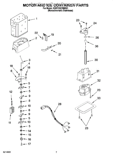 Parts for Kitchenaid KSRY25CRMS01: 05 - Motor And Ice Container Parts