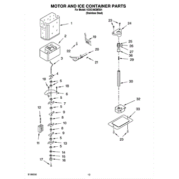 Located inside the freezer's ice bucket, this ice auger is the helical shaft that rotates to move cubes toward the chute for cubed or crushed ice. Replacing a worn or bent auger restores dispensing and helps prevent jams and grinding.