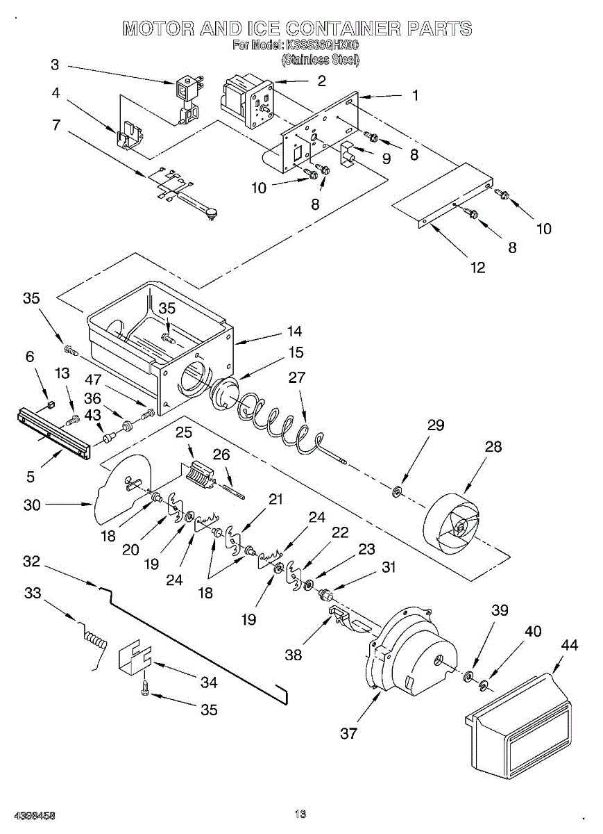 Parts for Kitchenaid KSSS36QHX00: 10 - Motor And Ice Container Parts
