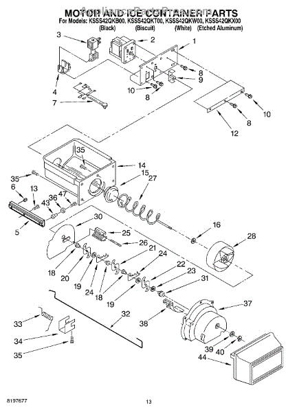 Parts for Kitchenaid KSSS42QKB00: 09 - Motor And Ice Container Parts