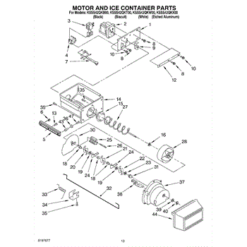 Parts for Kitchenaid KSSS42QKT00: 09 - Motor And Ice Container Parts