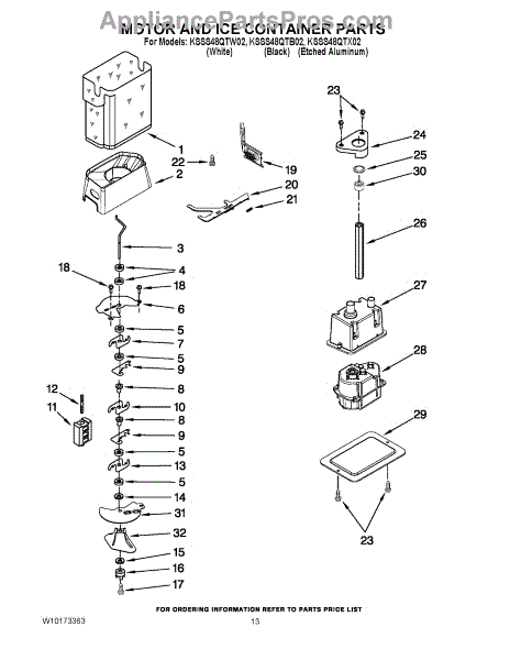 Parts for Kitchenaid KSSS48QTX02: 09 - Motor And Ice Container Parts