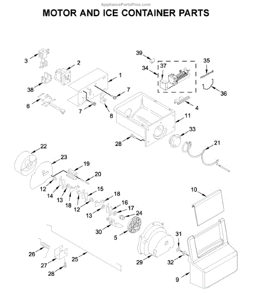 The Ice Bucket and Auger Assembly is an OEM replacement part for Whirlpool refrigerators. It includes both the ice storage bucket located in the freezer as well as the internal auger component. The auger works to periodically eject ice from the icemaker out into the conveniently accessible bucket area. Causes of a bad assembly can include wear and tear of the auger motor or gears over extended use. Damage may also occur from chewing or impact within the unit. Symptoms of a bad ice bucket and auger assembly include: