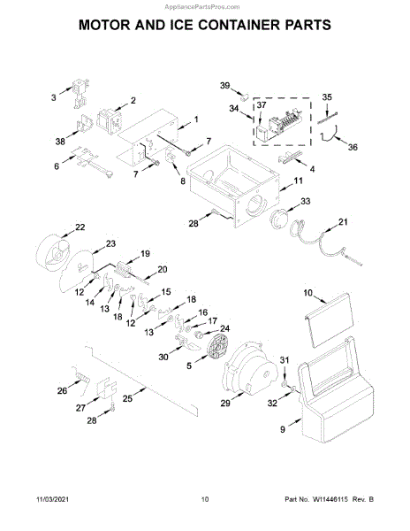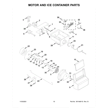 The Ice Bucket and Auger Assembly is an OEM replacement part for Whirlpool refrigerators. It includes both the ice storage bucket located in the freezer as well as the internal auger component. The auger works to periodically eject ice from the icemaker out into the conveniently accessible bucket area. Causes of a bad assembly can include wear and tear of the auger motor or gears over extended use. Damage may also occur from chewing or impact within the unit. Symptoms of a bad ice bucket and auger assembly include: