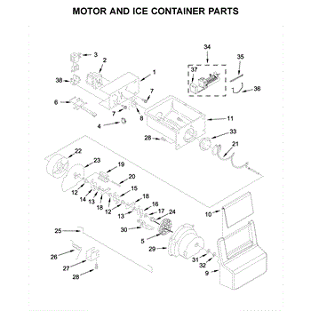 The Ice Bucket and Auger Assembly is an OEM replacement part for Whirlpool refrigerators. It includes both the ice storage bucket located in the freezer as well as the internal auger component. The auger works to periodically eject ice from the icemaker out into the conveniently accessible bucket area. Causes of a bad assembly can include wear and tear of the auger motor or gears over extended use. Damage may also occur from chewing or impact within the unit. Symptoms of a bad ice bucket and auger assembly include: