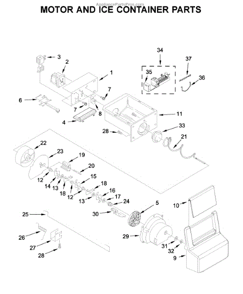 The Whirlpool ice dispenser motor is an OEM replacement part responsible for driving the mechanism that dispenses ice from the ice maker in a refrigerator. This motor is typically located within the ice container assembly, where it powers the auger or paddle responsible for pushing ice cubes through the dispenser chute and into a container or glass. When a user activates the ice dispenser on the refrigerator's exterior, the motor engages, causing the auger or paddle to rotate, delivering ice efficiently. This Whirlpool part can also be used on Maytag, KitchenAid, Jenn-Air, Amana, Magic Chef, Admiral, Norge, Roper, and Kenmore/Sears brand appliances. This part fixes the following symptoms