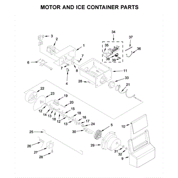The Ice Bucket is an OEM part for Whirlpool refrigerators. It is designed to collect and store ice produced by the refrigerator's ice maker. The ice bucket fits neatly inside the freezer compartment, providing a convenient place to access ice whenever needed.