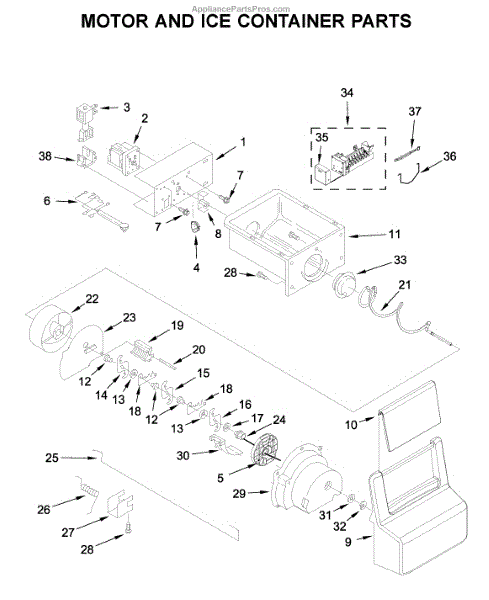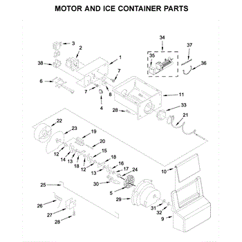 The Ice Bucket and Auger Assembly is an OEM replacement part for Whirlpool refrigerators. It includes both the ice storage bucket located in the freezer as well as the internal auger component. The auger works to periodically eject ice from the icemaker out into the conveniently accessible bucket area. Causes of a bad assembly can include wear and tear of the auger motor or gears over extended use. Damage may also occur from chewing or impact within the unit. Symptoms of a bad ice bucket and auger assembly include: