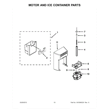 This ice container (ice bin) stores ice made by the icemaker and interfaces with the dispenser drive to deliver cubes or crushed ice. Replacing a cracked or worn bin restores dependable ice storage and dispensing performance.