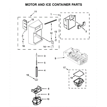 The Ice Container is an OEM part for Whirlpool refrigerators. It is responsible for holding and dispensing ice from the icemaker into the dispenser chute.