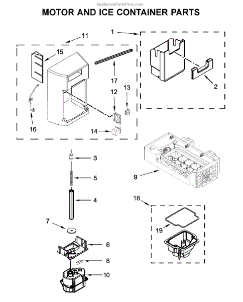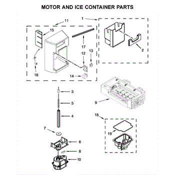 A bad ice container assembly can occur due to wear and tear over time or damage to the container or its components. If you notice symptoms such as the ice not dispensing properly, leaks from the dispenser area, or a broken or cracked ice container, it may be time to replace this part.