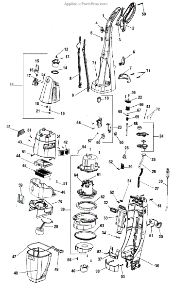 Parts for Hoover H3000-006: Motor, Mainhsg_Upper, Handle, Tank Parts