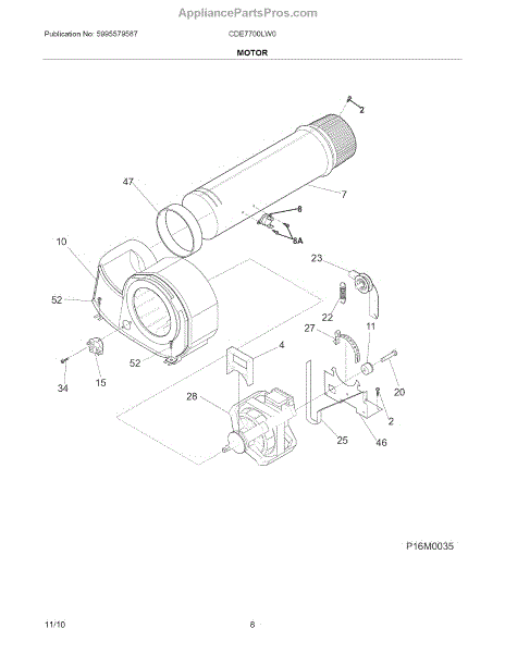 Parts for Crosley CDE7700LW0: Motor Parts