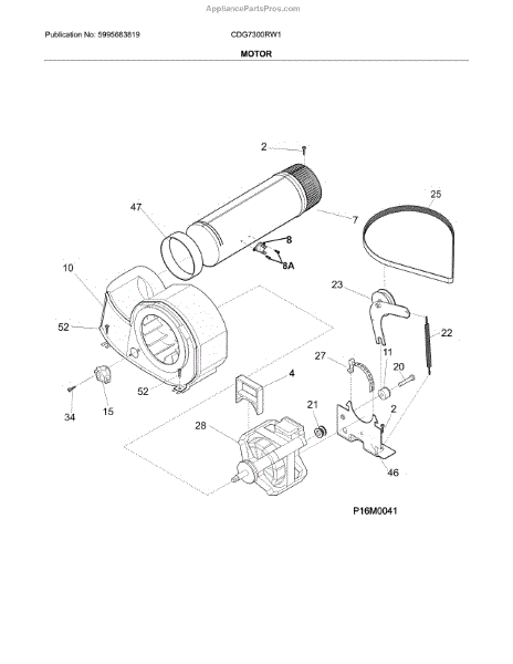 The Motor, Main w/ Pulley is an OEM replacement part for Frigidaire electric dryers. As the primary mechanical component, the motor works with the drum pulley to spin the dryer tumbler and circulate air during the drying cycle.