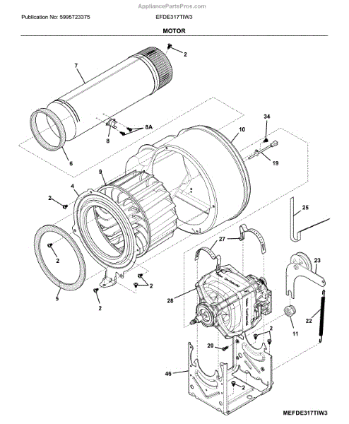 The Dryer Motor is an OEM part for Frigidaire dryers. It is responsible for turning the drum and the blower wheel to circulate air through the dryer, enabling efficient drying of clothes.