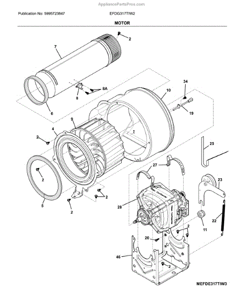 The Dryer Motor is an OEM part for Frigidaire dryers. It is responsible for turning the drum and the blower wheel to circulate air through the dryer, enabling efficient drying of clothes.