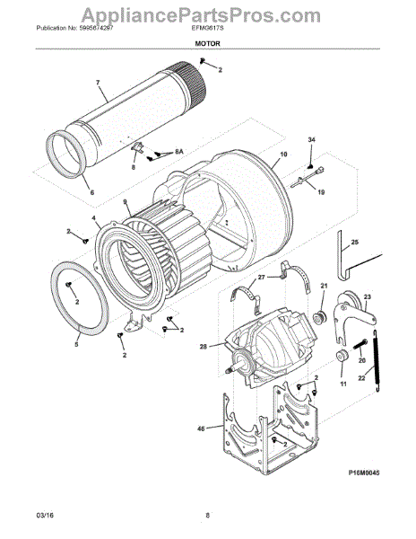The Dryer Motor is an OEM part for Frigidaire dryers. It is responsible for turning the drum and the blower wheel to circulate air through the dryer, enabling efficient drying of clothes.