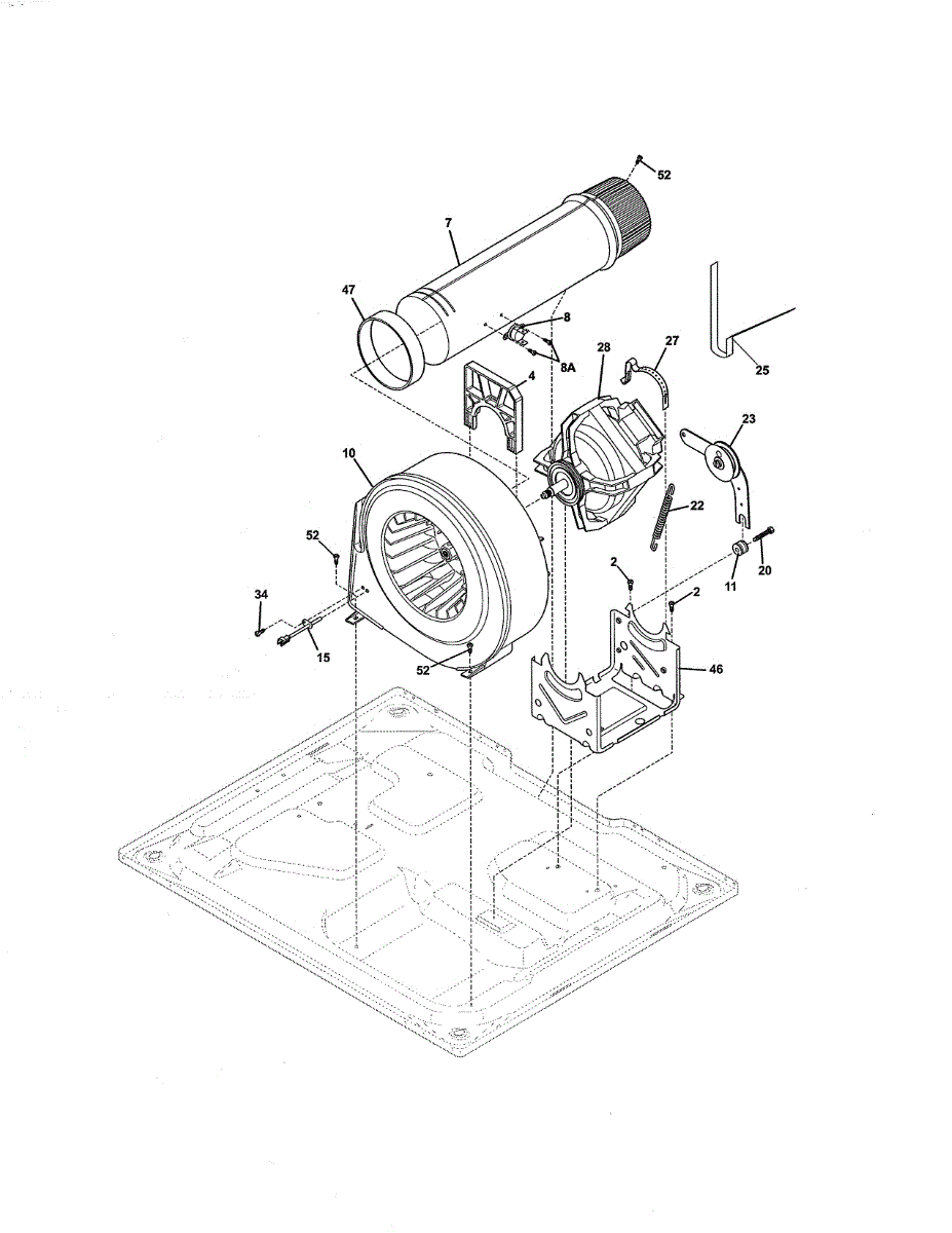 Secures the dryer motor in proper position for stable operation. Replace if motor shifts, buzzes, or clamp strips out. Confirm fit with your model number.